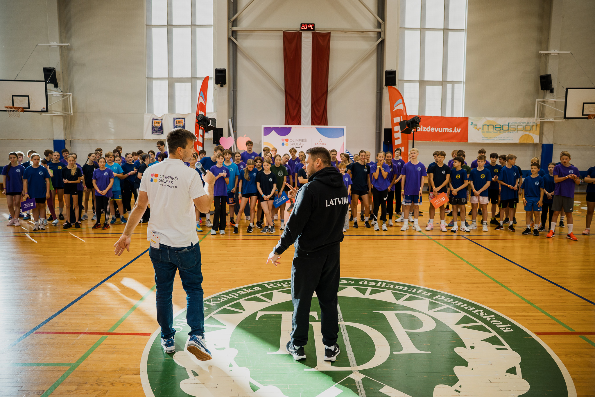 Vizītes laikā skolēni ne tikai klausījās, bet arī paši aktīvi iesaistījās: sportoja kopā ar olimpiešiem, izmēģināja veselīga uztura principus praksē un uzdeva jautājumus par sev svarīgākajām tēmām.