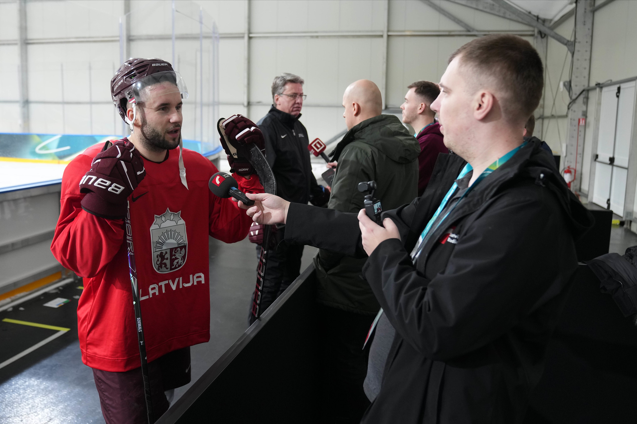 "Pārbaudījām lielās arēnas ledu. Bija smags treniņš, jo vakardien neslidojām. Parasti, kad ir izlaista viena diena bez ledus, tad ķermenis ir jāielaiž atpakaļ sportiskajā ritmā, jāizjūt ledus, bet viss kārtībā," stāstīja hokejists.