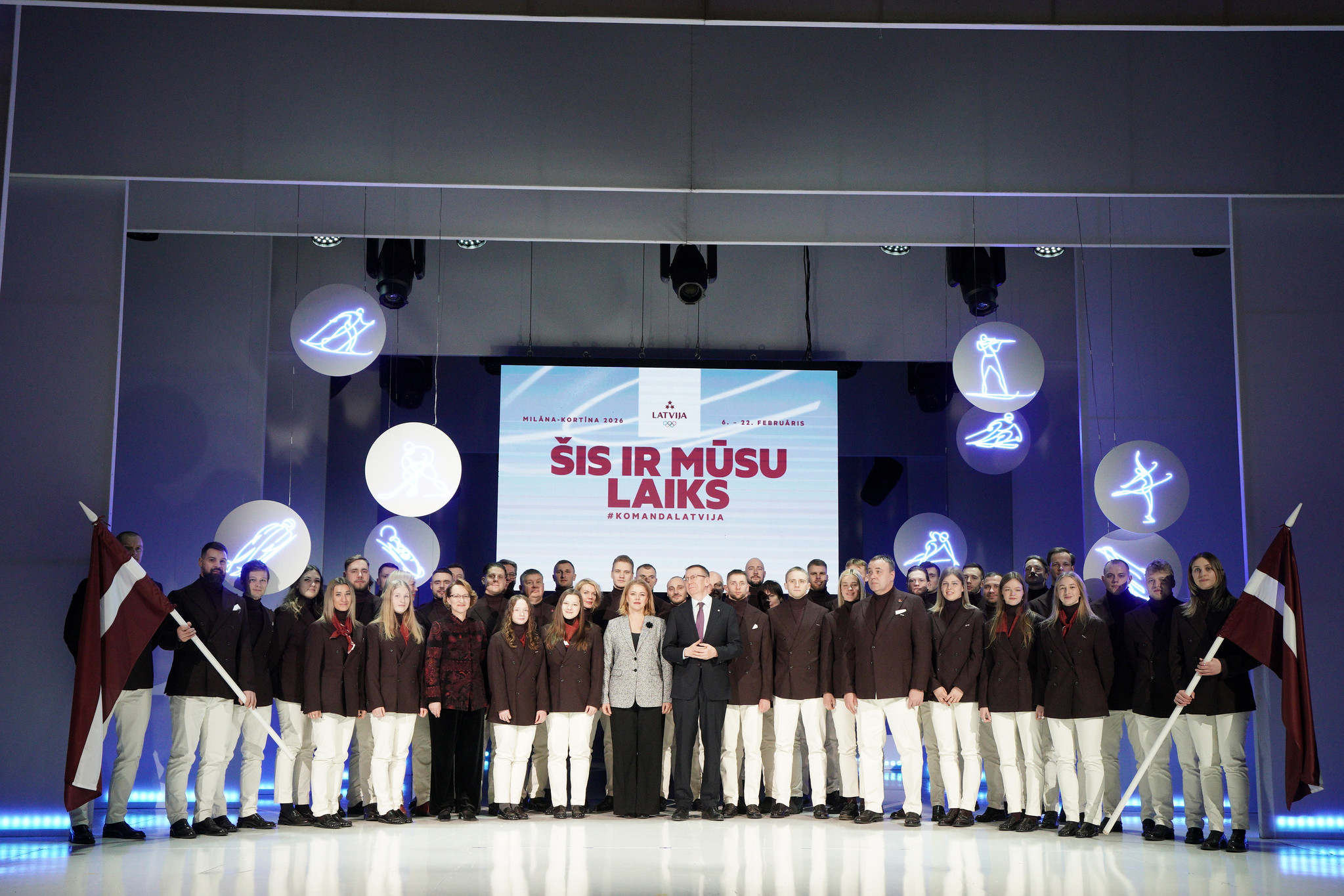 Šodien, 28.janvārī, Latvijas Nacionālajā teātrī svinīgā ceremonijā tika prezentēta Komanda Latvija - līdz šim lielākā Latvijas delegācijas ar 68 sportistiem, kuri Milānas - Kortīnas Olimpiskajās spēlēs pārstāvēs deviņus sporta veidus. Prezentācijas kulminācijā Valsts prezidents Edgars Rinkēvičs un Ministru prezidente Evika Siliņa paziņoja karognesējus, nosaucot kalnu slēpotāju Dženiferu Ģērmani un hokejistu Kasparu Daugaviņu, kuriem svinīgi tika pasniegti Latvijas valsts karogi.