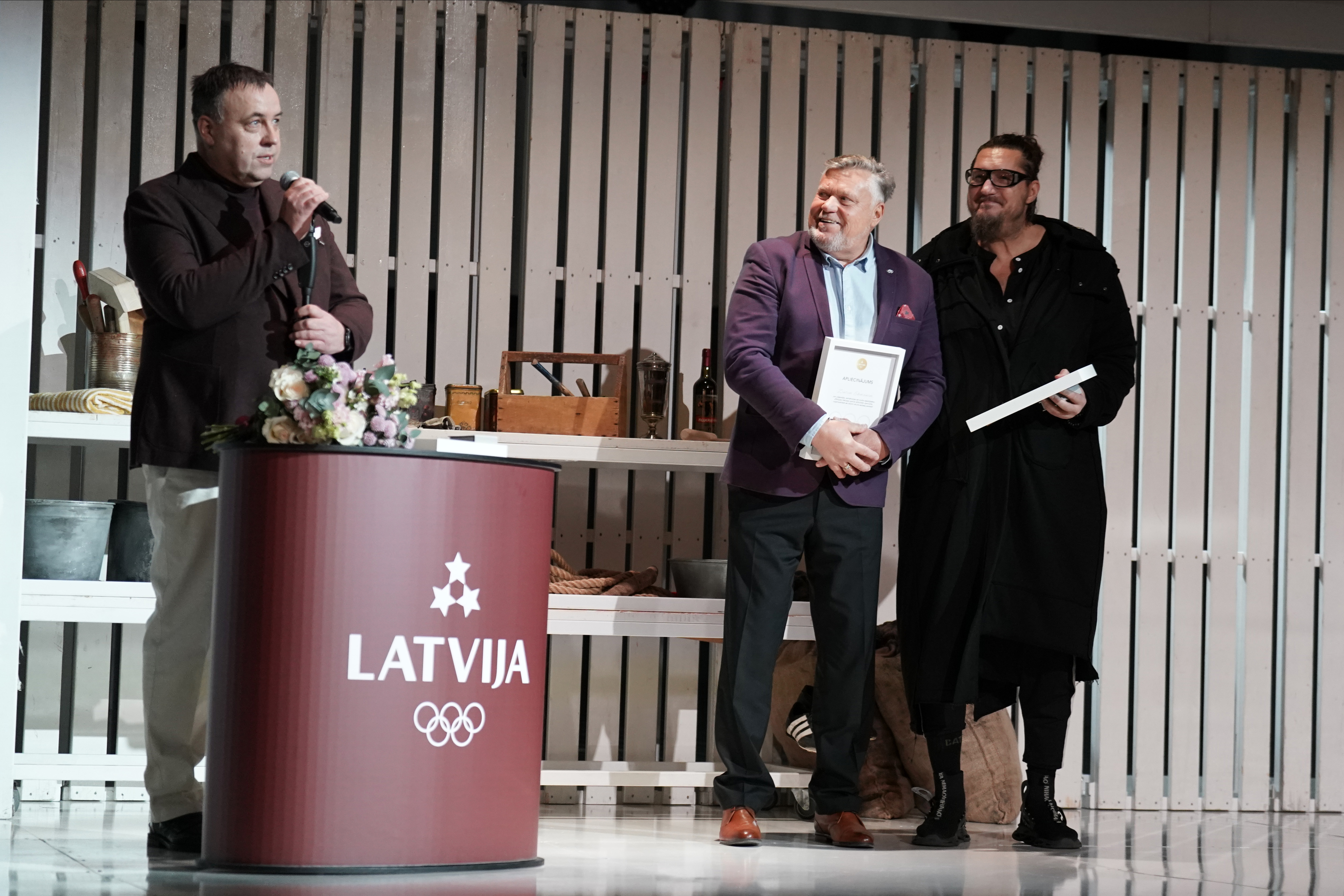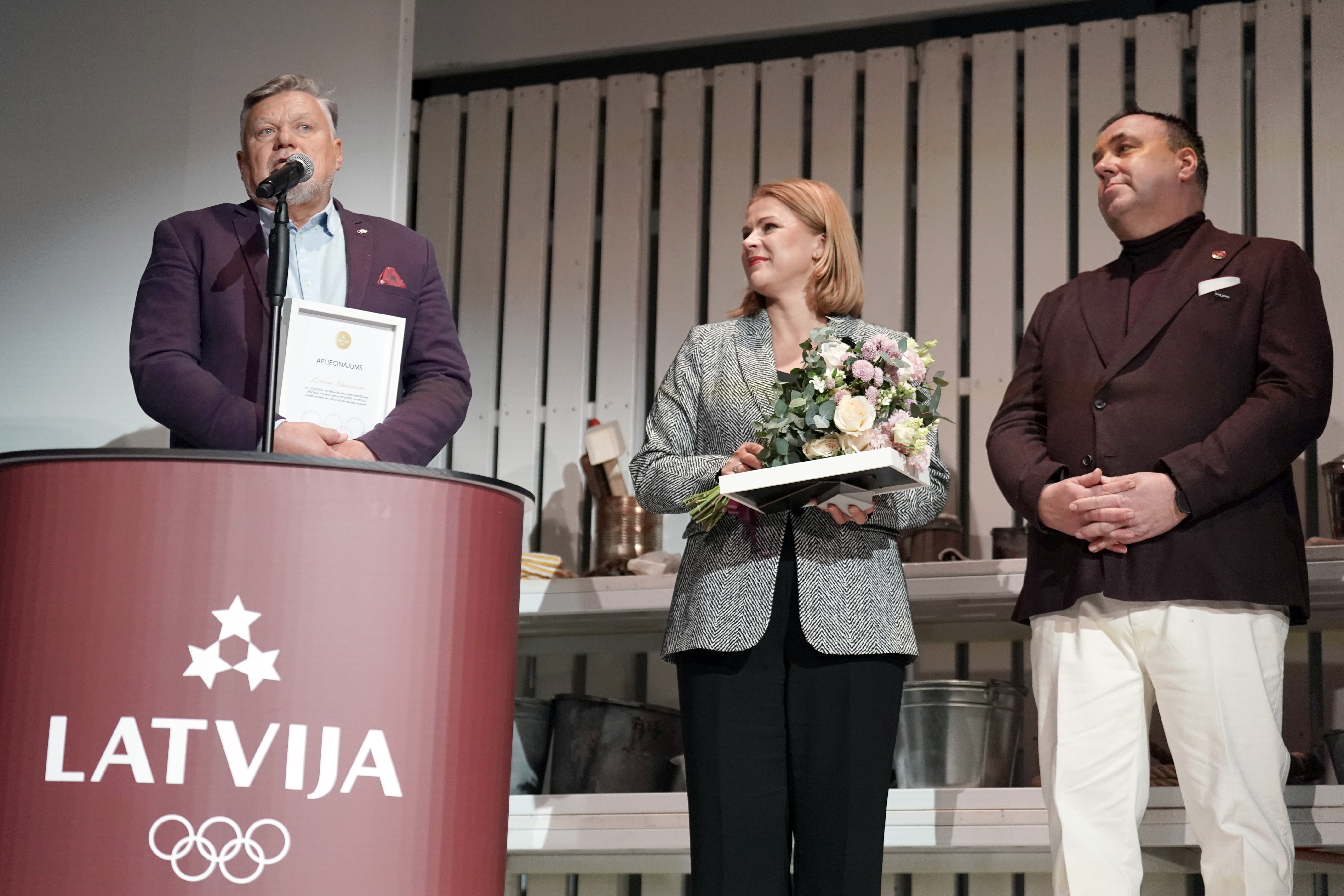 Trešdien, 28. janvārī Nacionālajā teātrī, pirms Liepājas teātra izrādes “Latviešu raķetes”, Latvijas Olimpiskā komitejas prezidents Raimonds Lazdiņš pasniedza trīs LOK Zelta goda zīmes personām, kuru darbs būtiski veicinājis Latvijas sporta, kultūras un olimpiskās kustības attīstību.