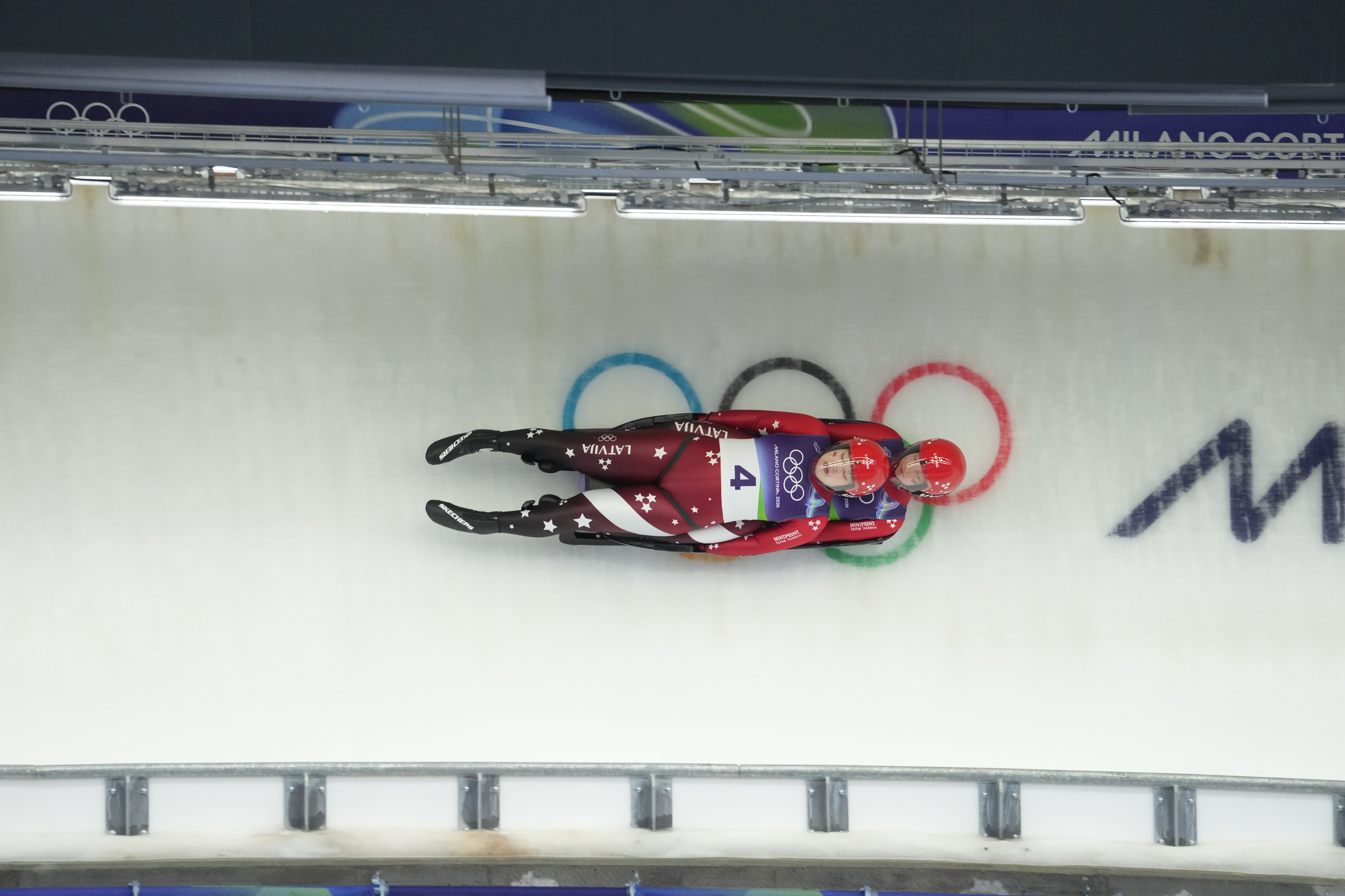 Latvijas kamaniņu sporta divnieku ekipāža Marta Robežniece/Kitija Bogdanova pēc olimpisko spēļu sacensību pirmā brauciena ieņem ceturto vietu, no labāko trijnieka atpaliekot trīs sekundes desmitdaļas.
